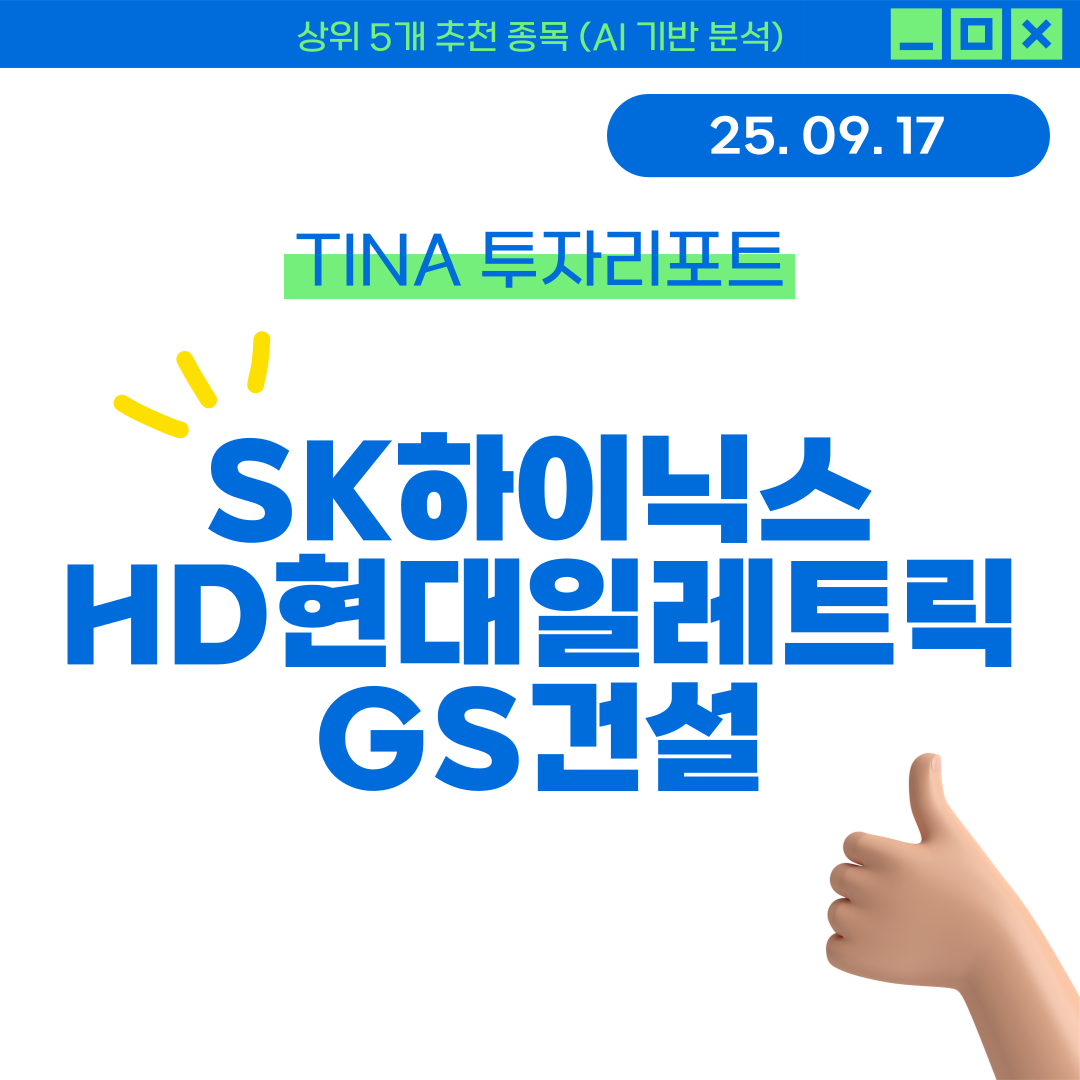 [TINA 투자리포트] 25년 09월 17일 추천 SK하이닉스, HD현대일레트릭, GS건설