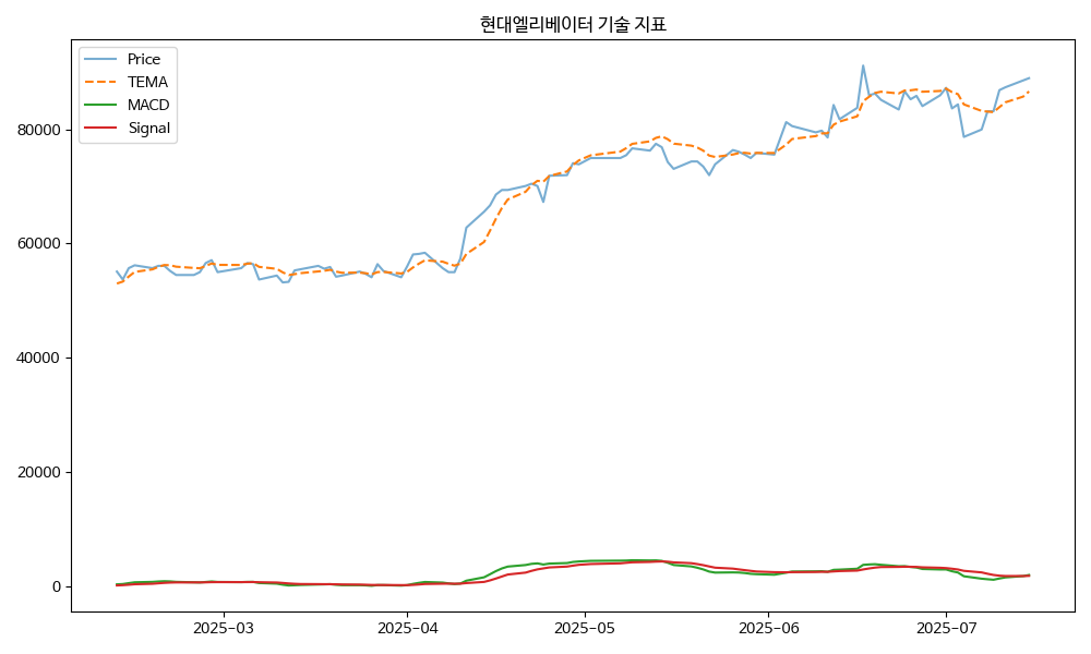 - TEMA: 현재가 89000.00, TEMA 86668.54 → 상승 흐름