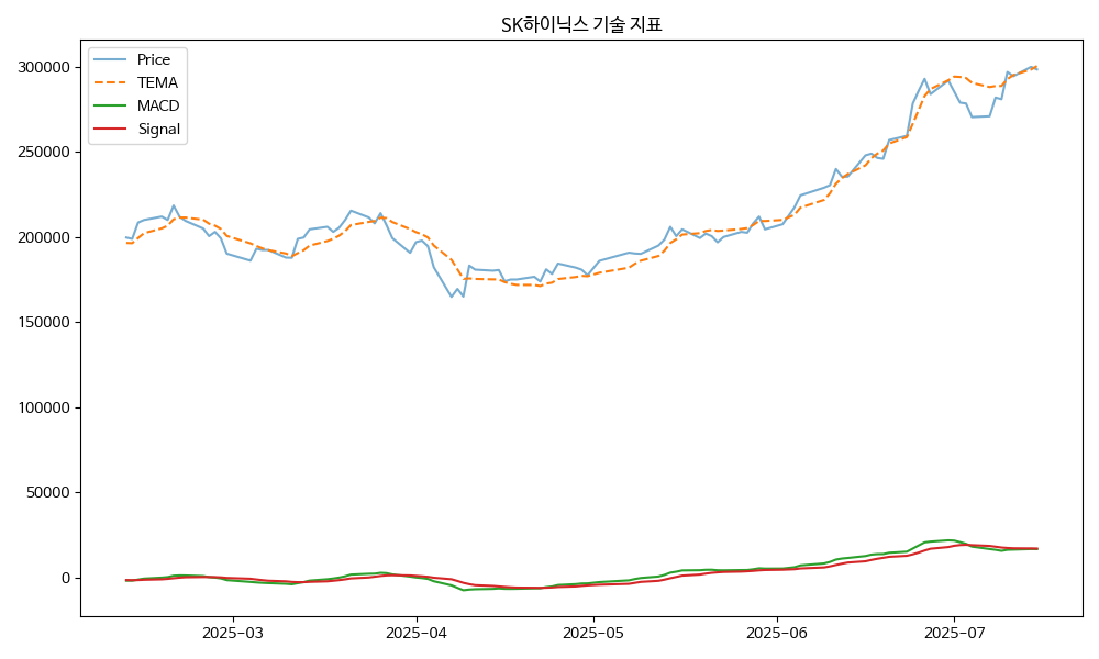 - TEMA: 현재가 298500.00, TEMA 300472.44 → 하락 흐름