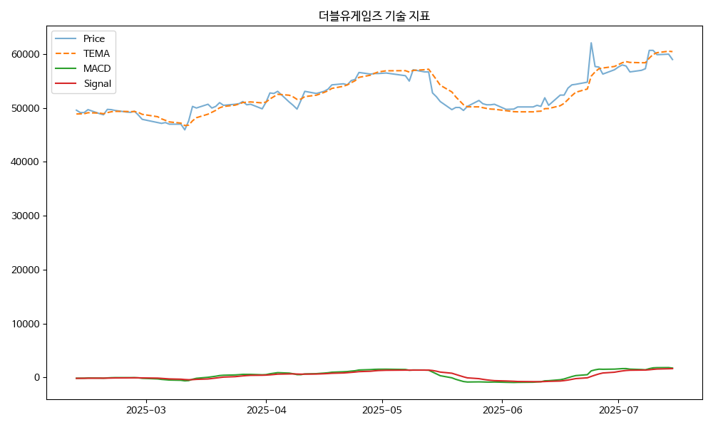 - TEMA: 현재가 59000.00, TEMA 60469.49 → 하락 흐름