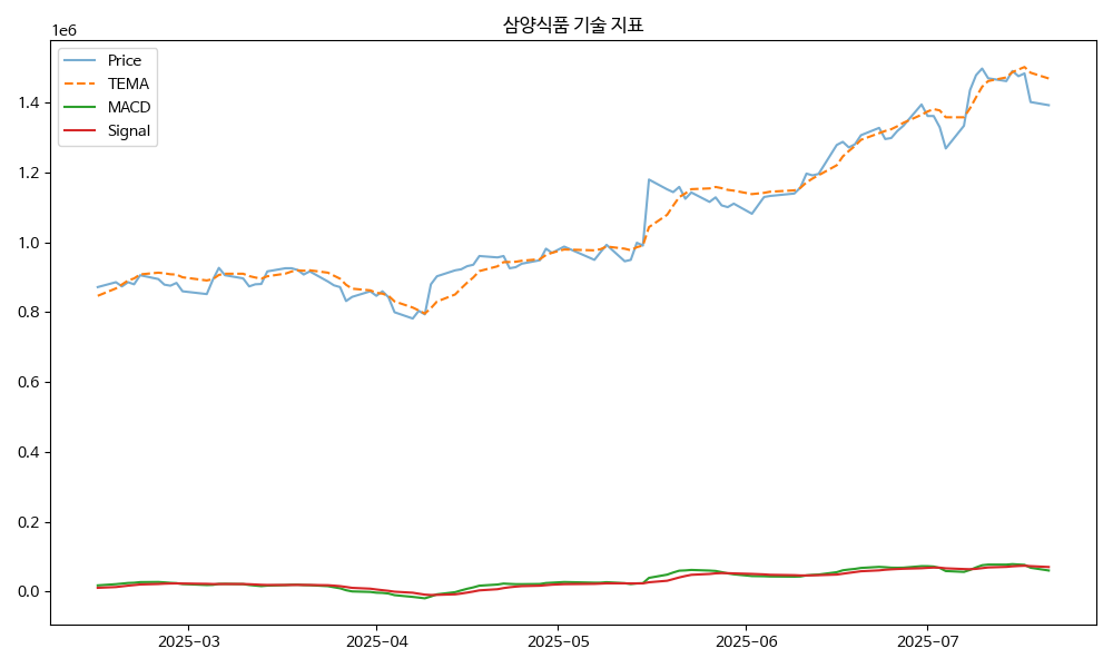 - TEMA: 현재가 9080.00, TEMA 8868.23 → 상승 흐름