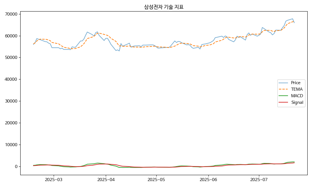 - TEMA: 현재가 66000.00, TEMA 66661.84 → 하락 흐름