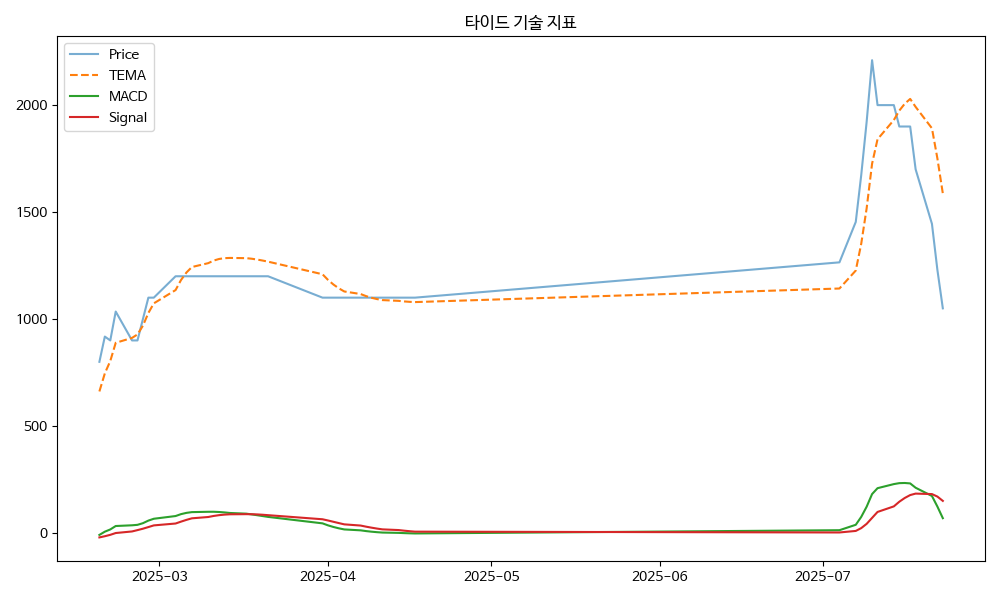• TEMA: 현재가 1050.00, TEMA 1587.05 → 하락 흐름