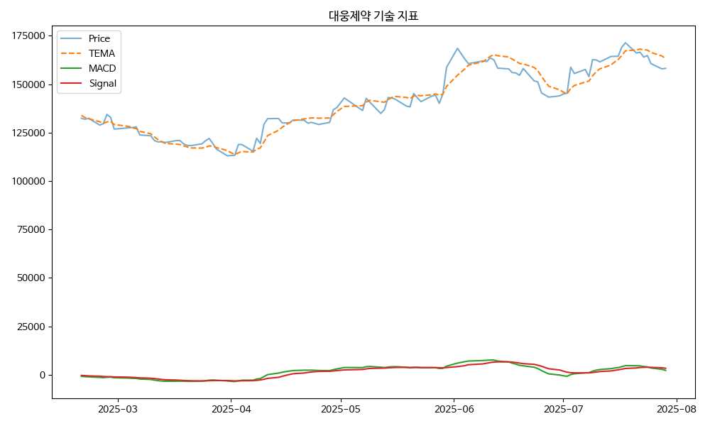 - TEMA: 현재가 158200.00, TEMA 163173.81 → 하락 흐름