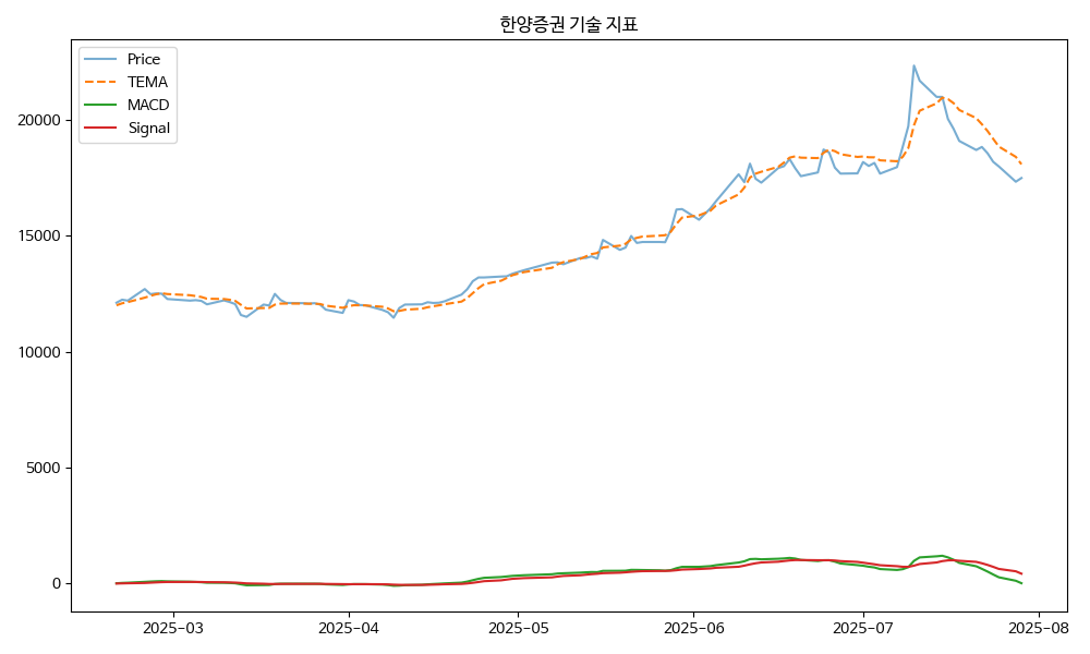 - TEMA: 현재가 17500.00, TEMA 18092.99 → 하락 흐름
