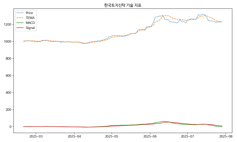 - TEMA: 현재가 1232.00, TEMA 1229.61 → 상승 흐름