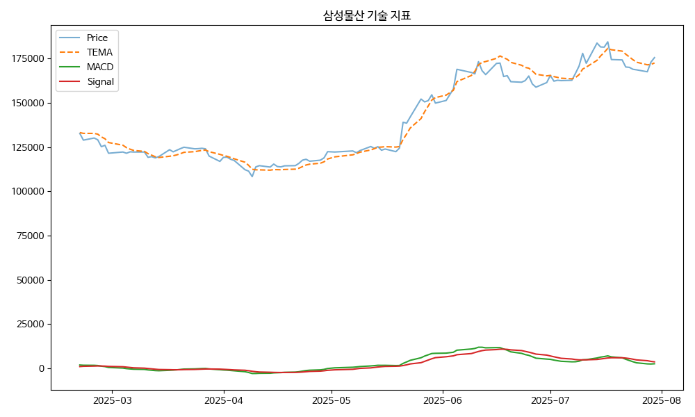 - TEMA: 현재가 175500.00, TEMA 172462.17 → 상승 흐름