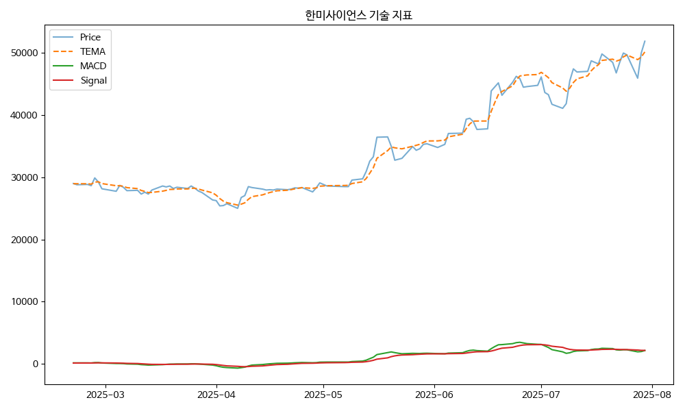 - TEMA: 현재가 51900.00, TEMA 50173.67 → 상승 흐름