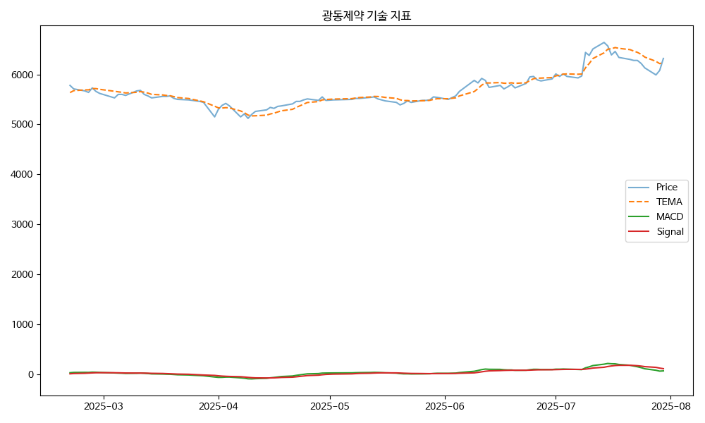 - TEMA: 현재가 6320.00, TEMA 6239.51 → 상승 흐름
