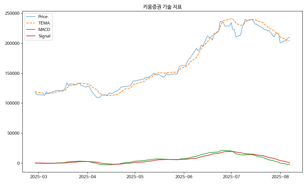 - TEMA: 현재가 209500.00, TEMA 203902.05 → 상승 흐름