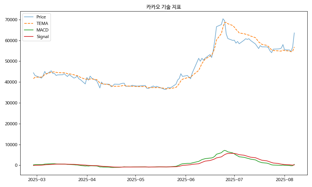 - TEMA: 현재가 63600.00, TEMA 56838.51 → 상승 흐름
