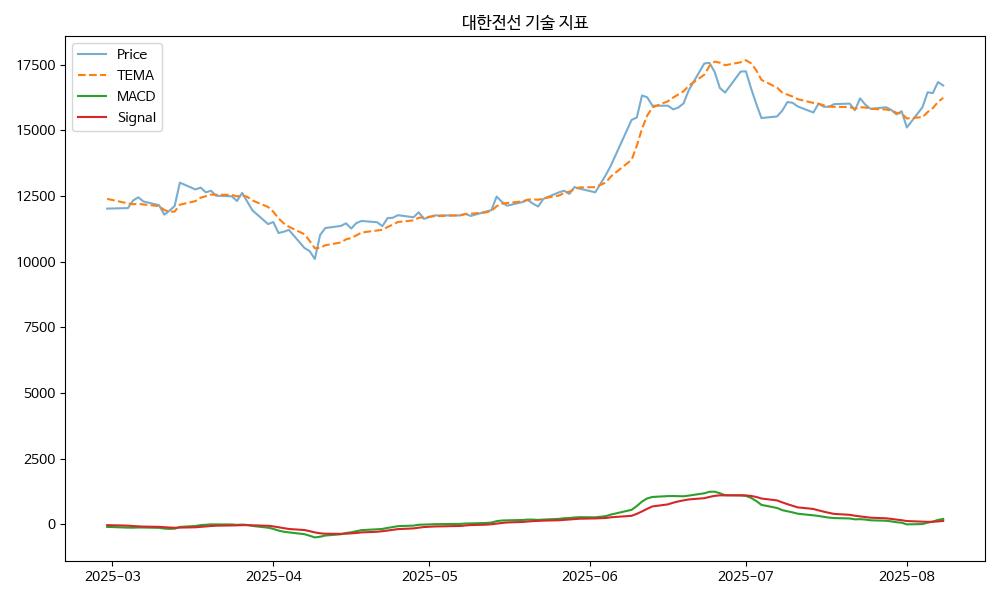 - TEMA: 현재가 16710.00, TEMA 16240.18 → 상승 흐름