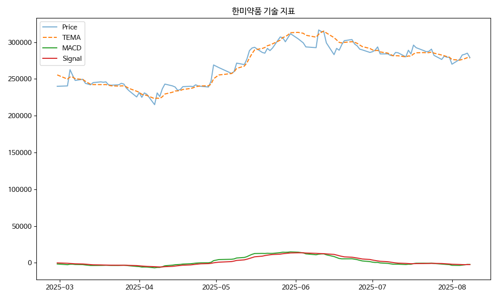 - TEMA: 현재가 279000.00, TEMA 278471.61 → 상승 흐름