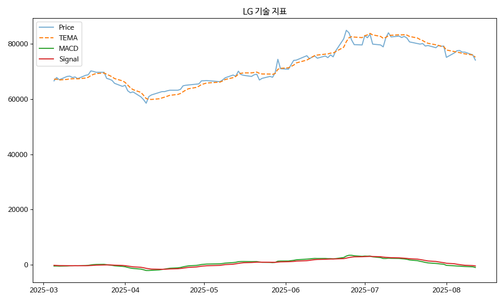 - TEMA: 현재가 74100.00, TEMA 75164.17 → 하락 흐름