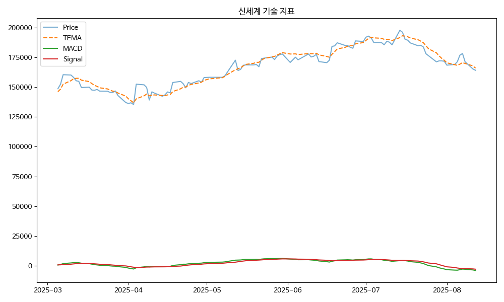 - TEMA: 현재가 164200.00, TEMA 165956.00 → 하락 흐름