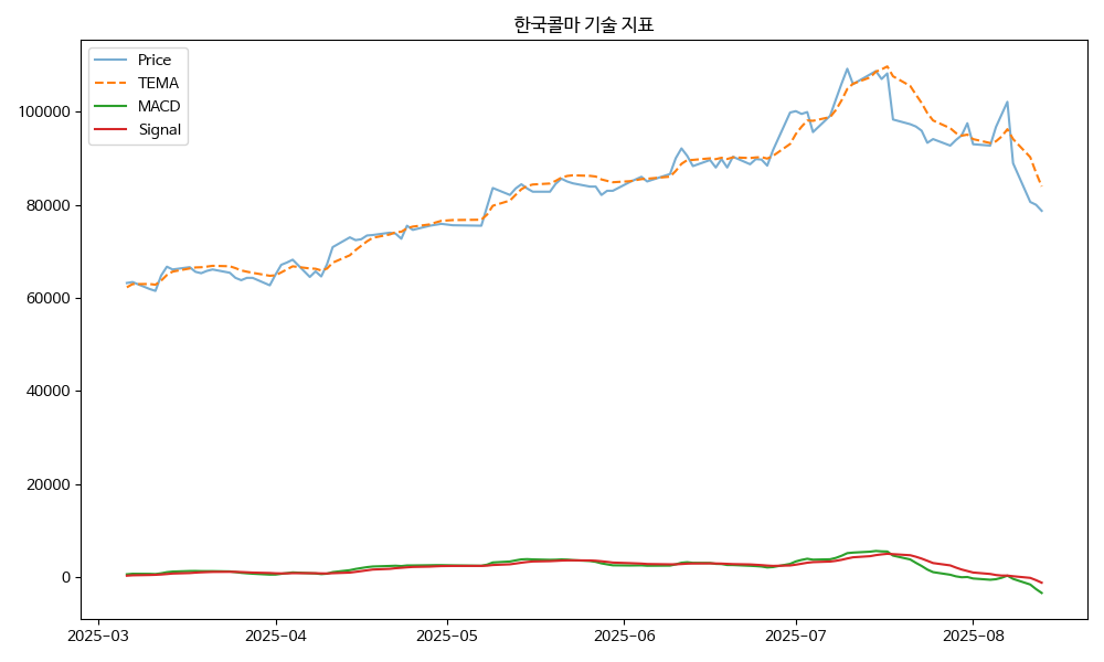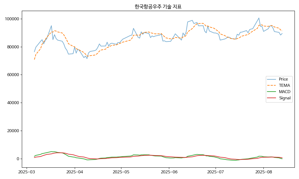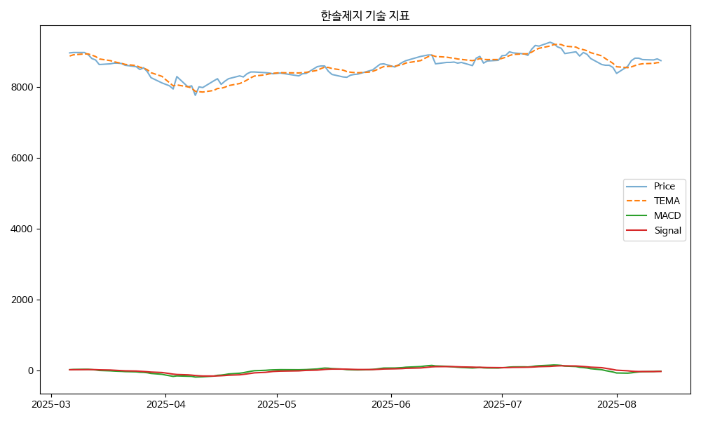 - TEMA: 현재가 8740.00, TEMA 8687.04 → 상승 흐름