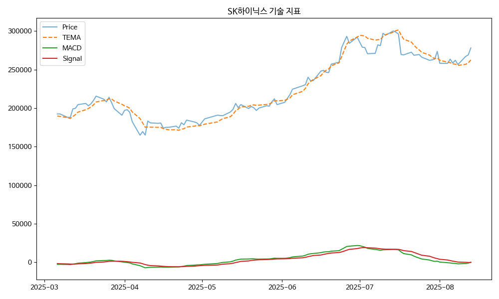 - TEMA: 현재가 278000.00, TEMA 262468.40 → 상승 흐름