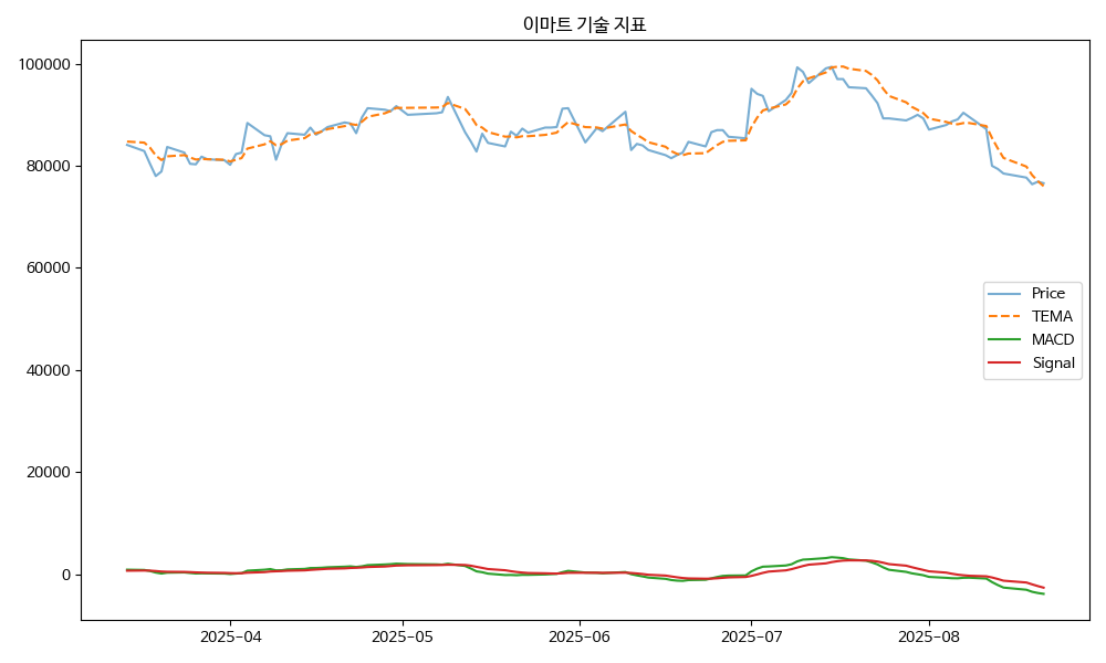 - TEMA: 현재가 4030.00, TEMA 3982.06 → 상승 흐름