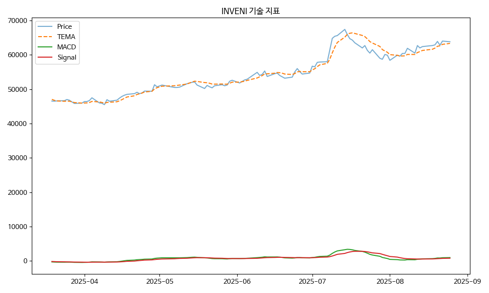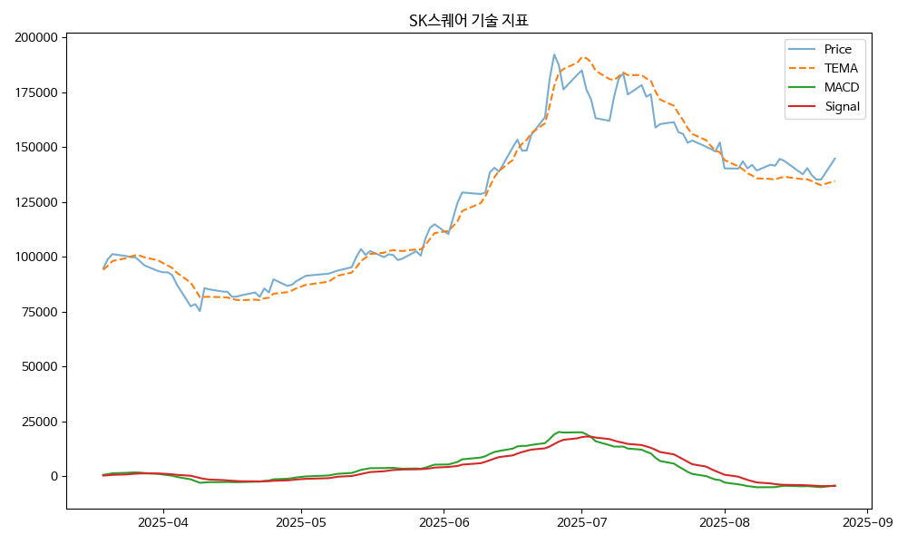 - TEMA: 현재가 144800.00, TEMA 134575.12 → 상승 흐름