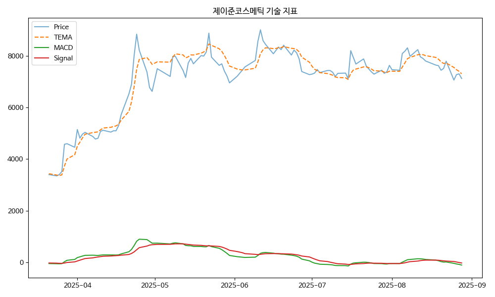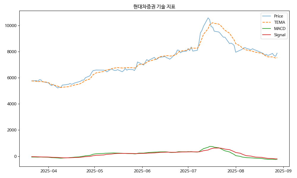 - TEMA: 현재가 7880.00, TEMA 7540.74 → 상승 흐름