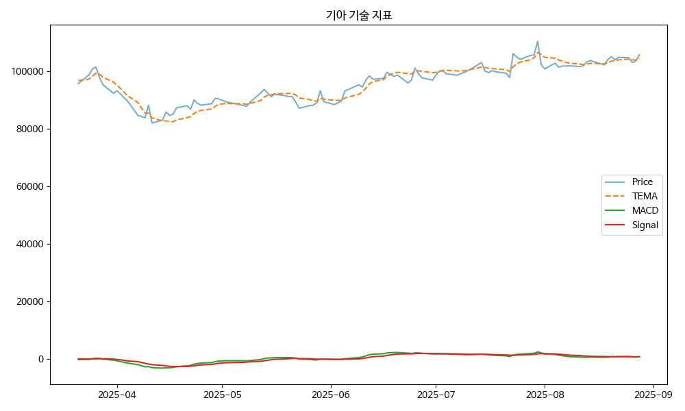- TEMA: 현재가 105700.00, TEMA 104353.65 → 상승 흐름