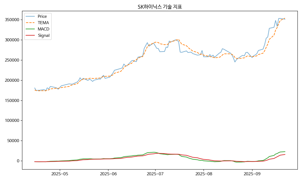 - TEMA: 현재가 351000.00, TEMA 353661.63 → 하락 흐름