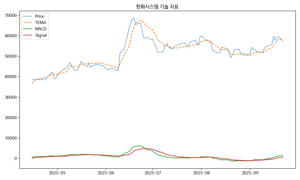 - TEMA: 현재가 57500.00, TEMA 58378.30 → 하락 흐름