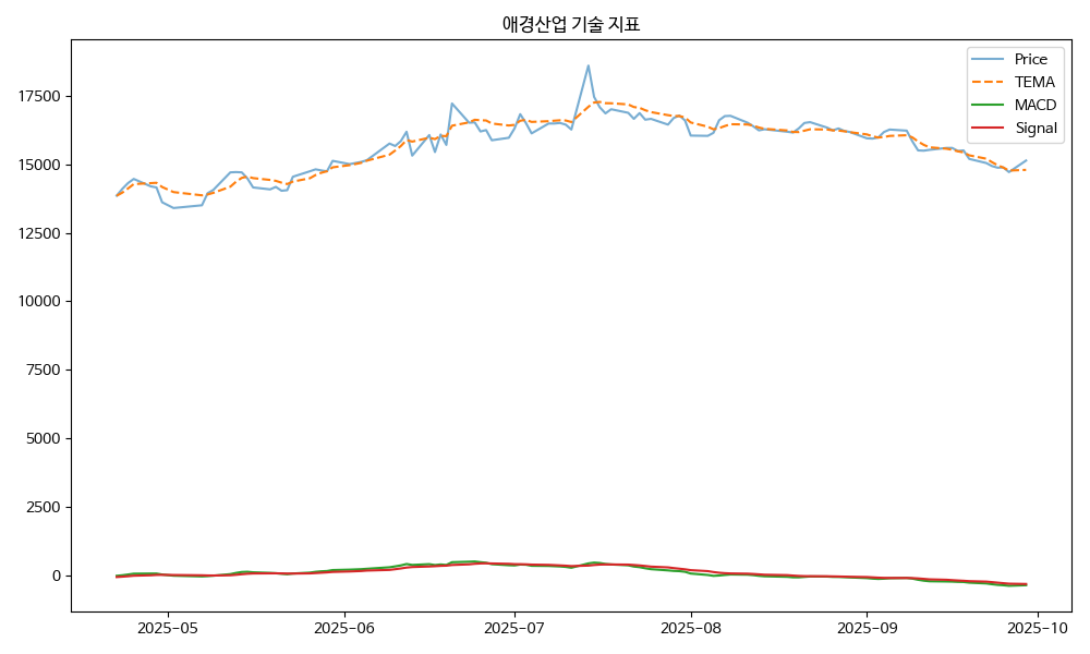 - TEMA: 현재가 15130.00, TEMA 14790.23 → 상승 흐름