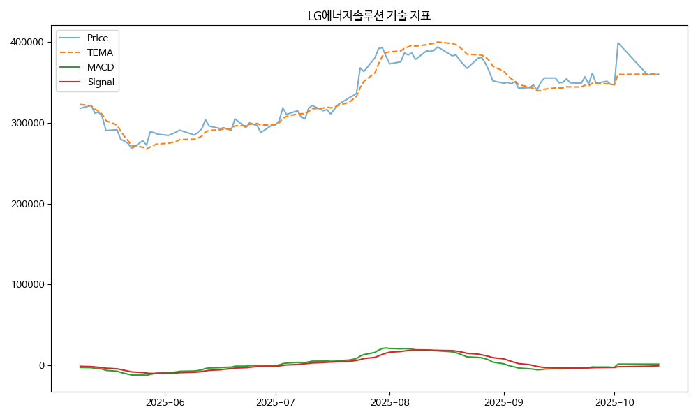 - TEMA: 현재가 360000.00, TEMA 360567.11 → 하락 흐름