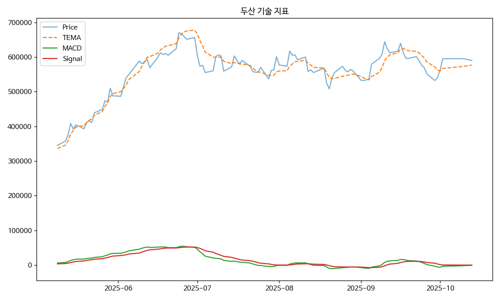 - TEMA: 현재가 590000.00, TEMA 576501.55 → 상승 흐름