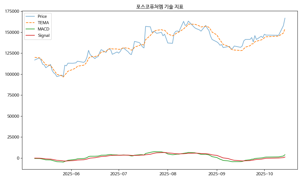 - TEMA: 현재가 166700.00, TEMA 154229.14 → 상승 흐름