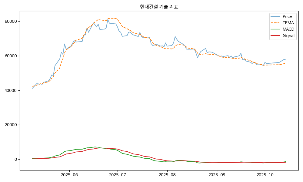 - TEMA: 현재가 57600.00, TEMA 55892.92 → 상승 흐름