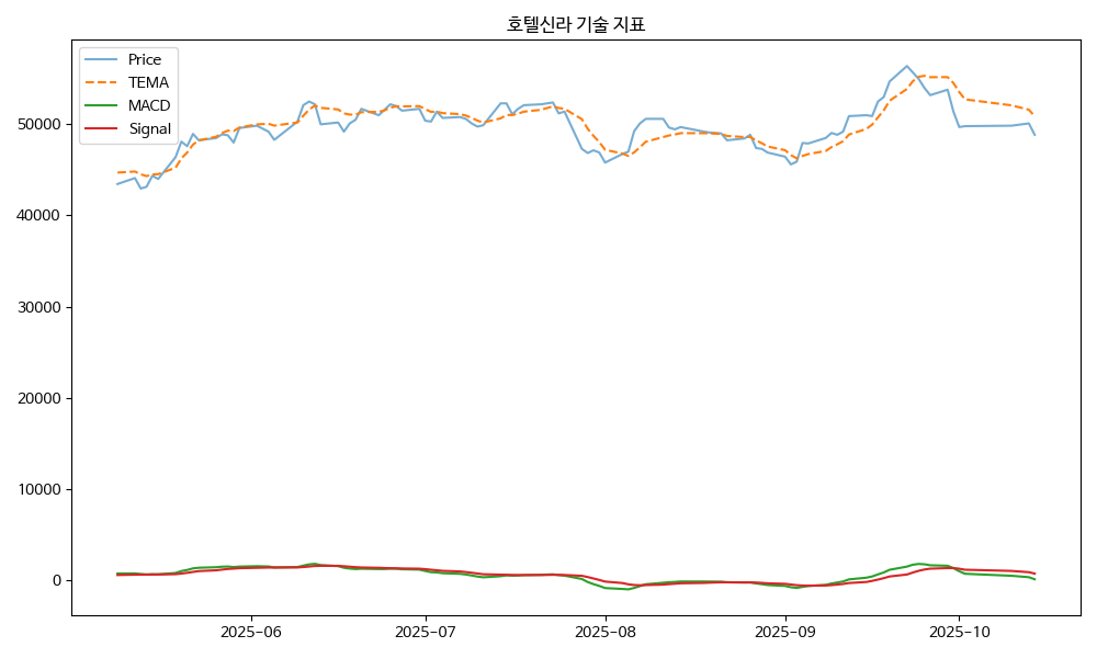 - TEMA: 현재가 48850.00, TEMA 50882.75 → 하락 흐름