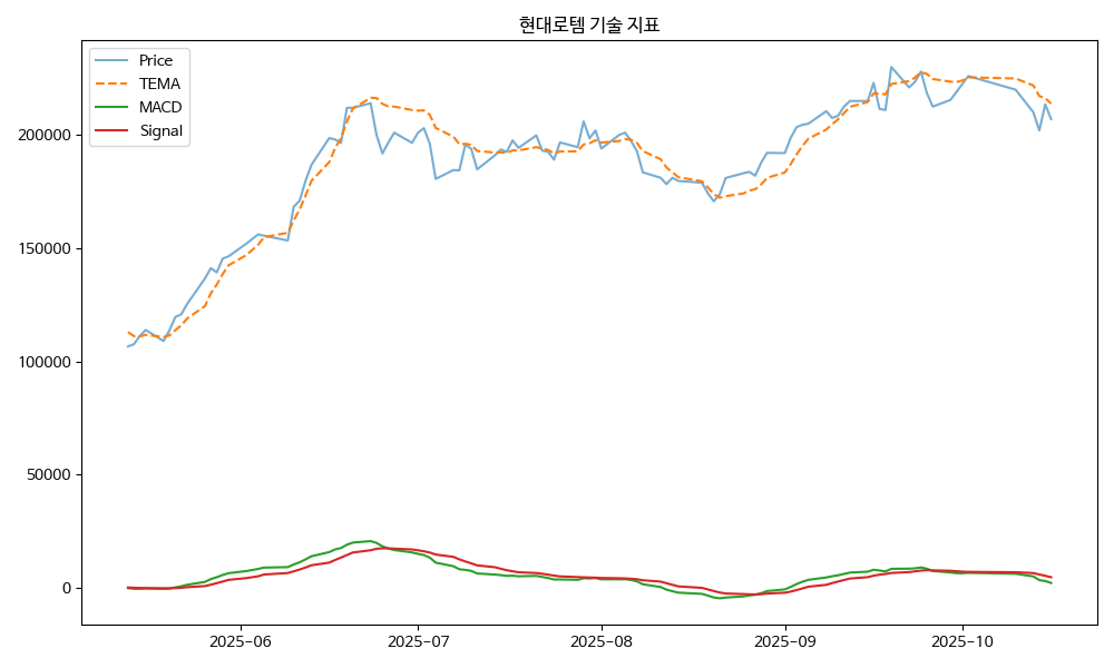 - TEMA: 현재가 207000.00, TEMA 213858.64 → 하락 흐름