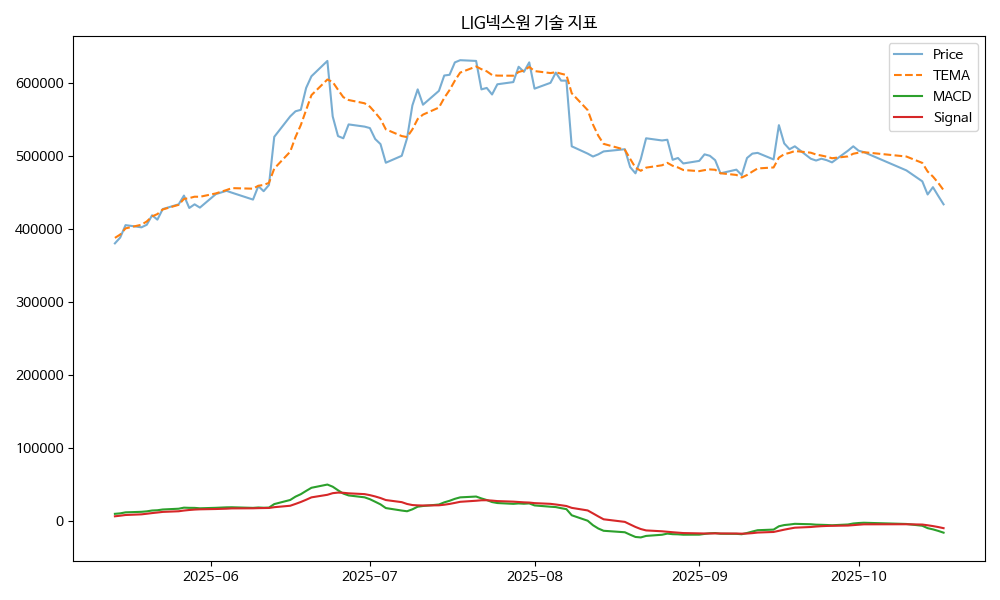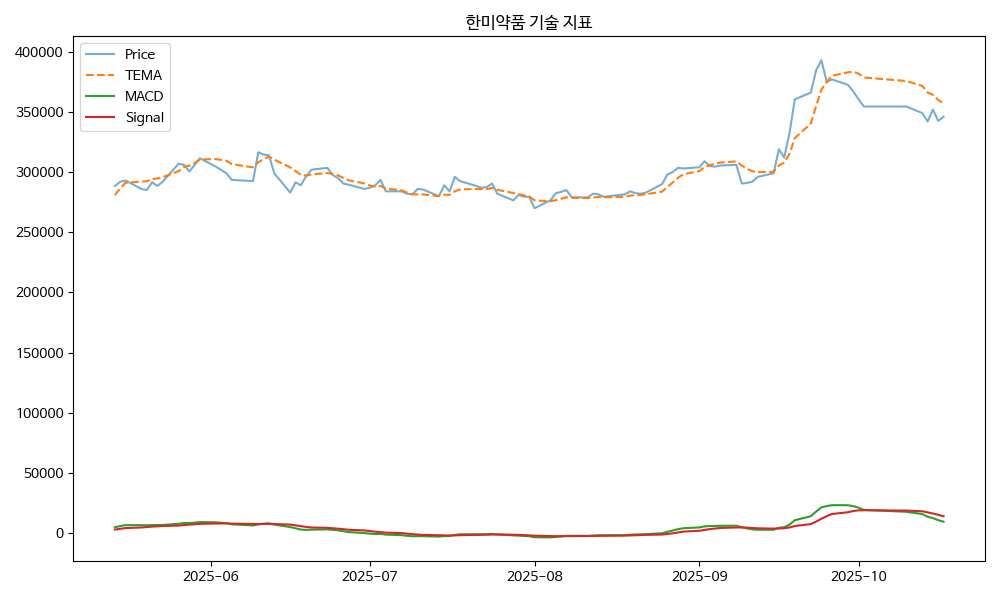 - TEMA: 현재가 346000.00, TEMA 357222.99 → 하락 흐름