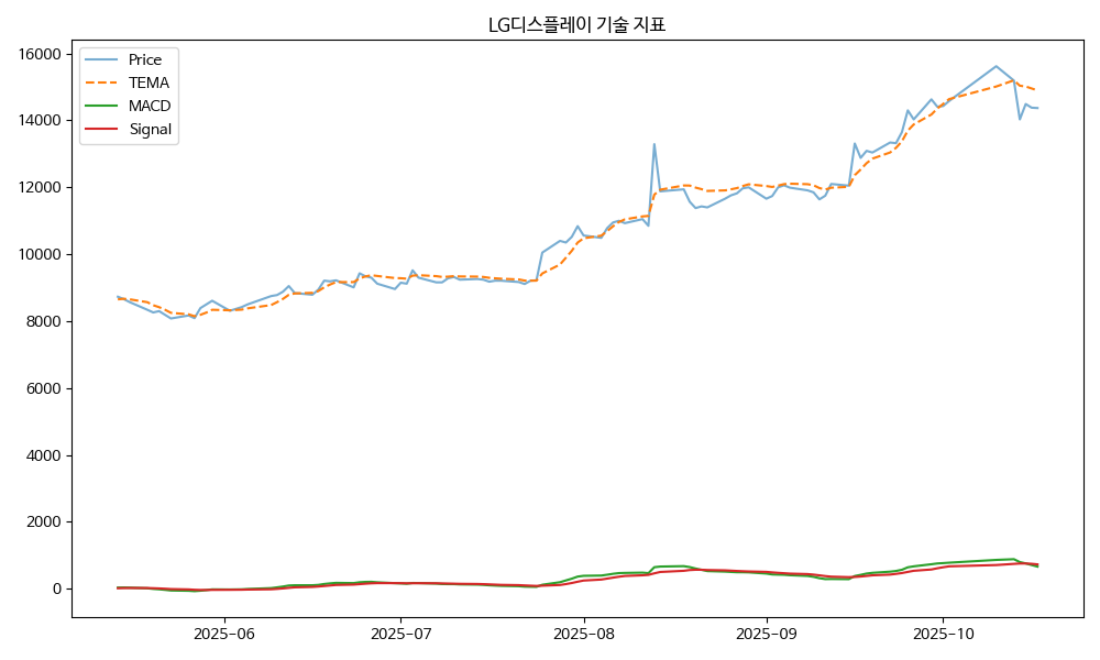 - TEMA: 현재가 14370.00, TEMA 14895.45 → 하락 흐름
