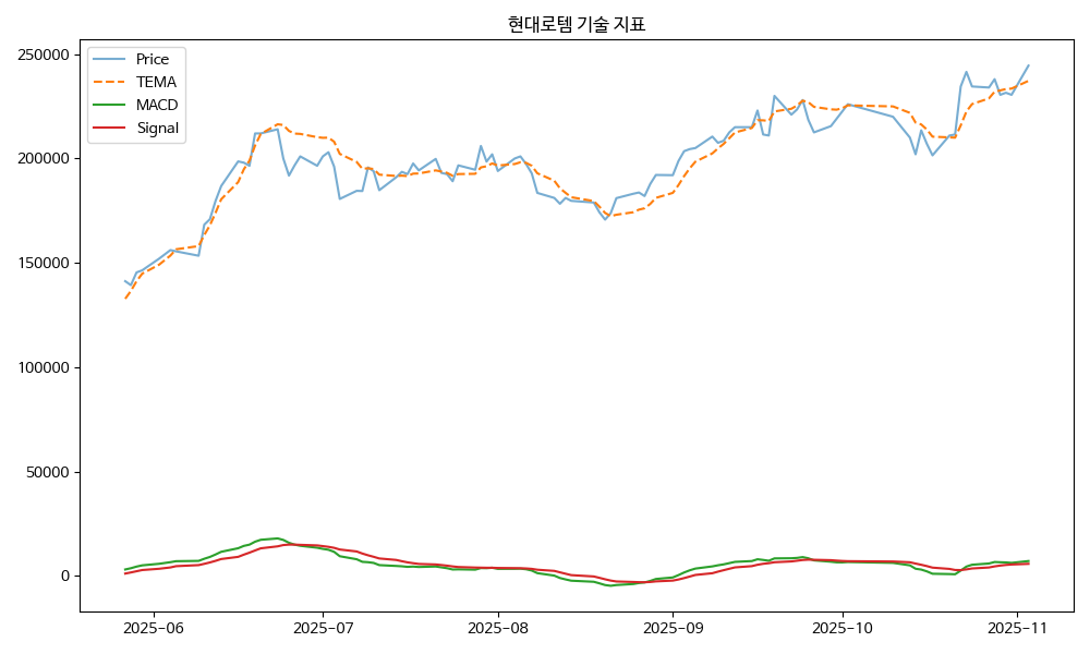 • TEMA: 현재가 244500.00, TEMA 237206.68 → 상승 흐름