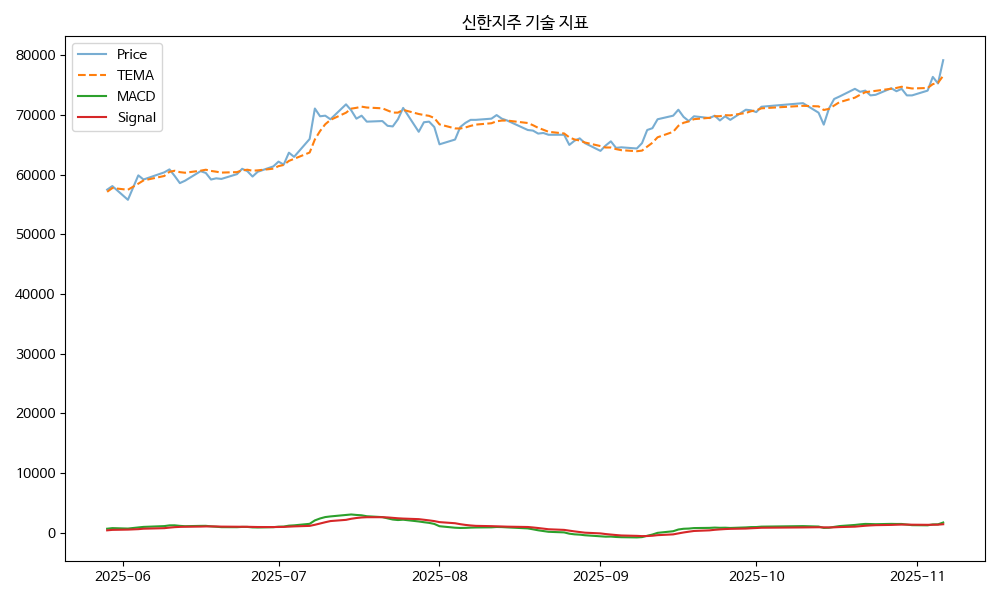 - TEMA: 현재가 79200.00, TEMA 76586.16 → 상승 흐름