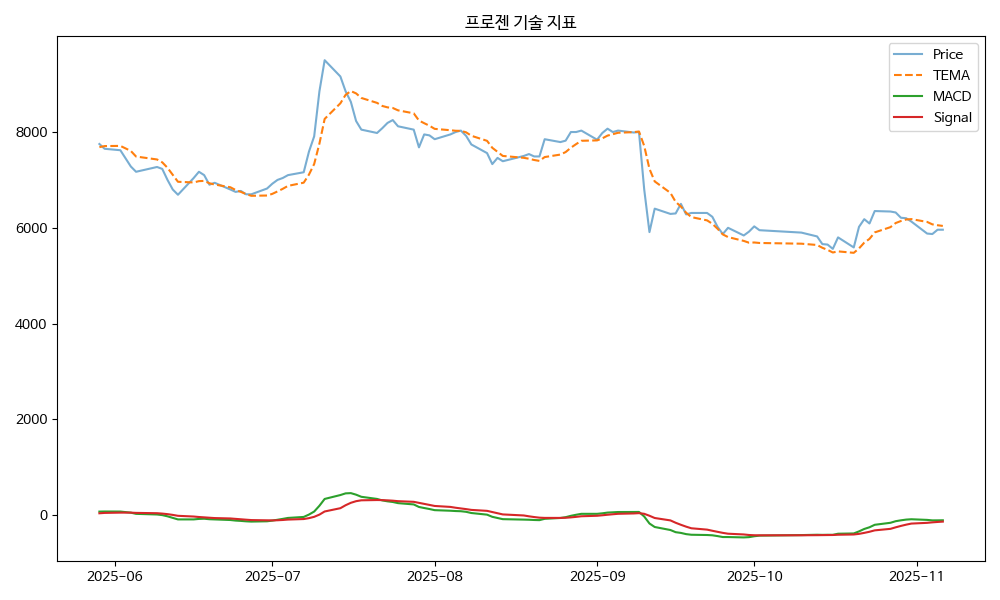 - TEMA: 현재가 5960.00, TEMA 6038.93 → 하락 흐름