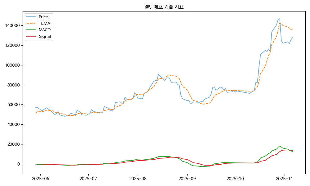 기술 지표에 따르면 Golden Cross와 MA Ratio가 상승 추세에 있으며, Force Index와 VWAP, Momentum 5도 양호한 상태를 보이고 있습니다. 이는 주가가 상승할 가능성이 높다는 신호로 해석할 수 있습니다.