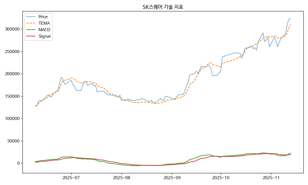 - TEMA: 현재가 323500.00, TEMA 310692.04 → 상승 흐름