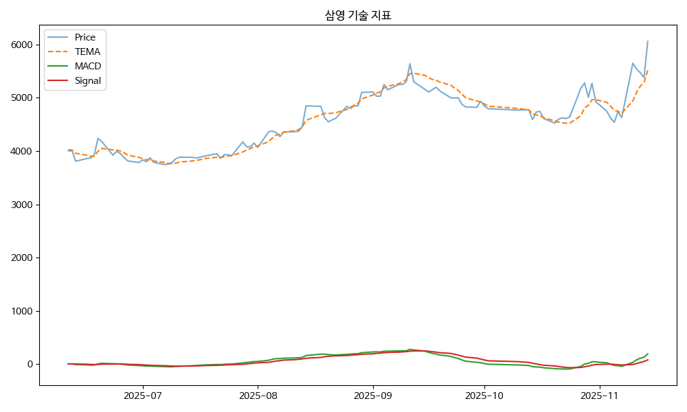• TEMA: 현재가 6060.00, TEMA 5517.15 → 상승 흐름