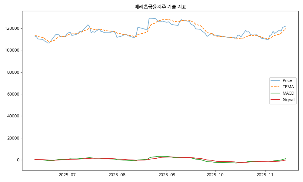 - TEMA: 현재가 121900.00, TEMA 119577.59 → 상승 흐름