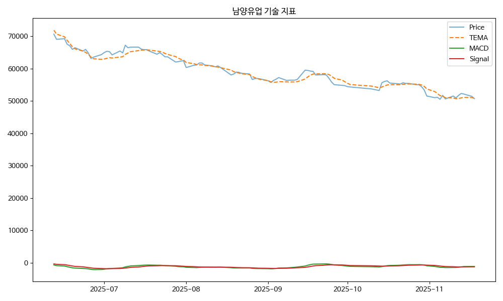 - TEMA: 현재가 50700.00, TEMA 50812.12 → 하락 흐름