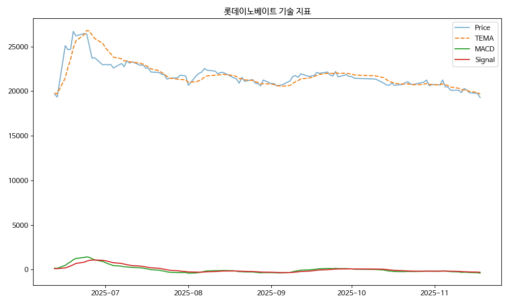 - TEMA: 현재가 19290.00, TEMA 19653.40 → 하락 흐름