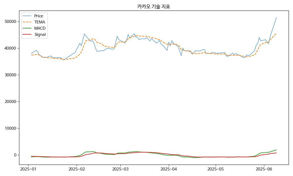 - TEMA: 현재가 51400.00, TEMA 45563.89 → 상승 흐름