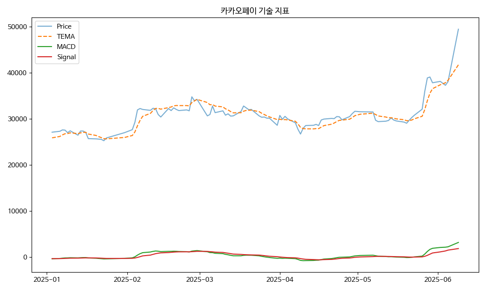 - TEMA: 현재가 49500.00, TEMA 41749.49 → 상승 흐름