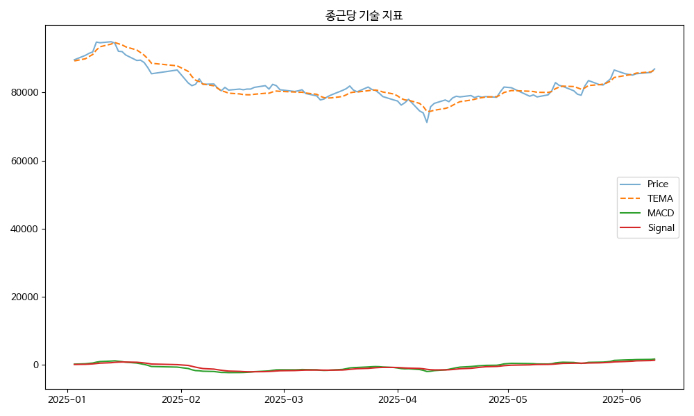 - TEMA: 현재가 86900.00, TEMA 86598.95 → 상승 흐름