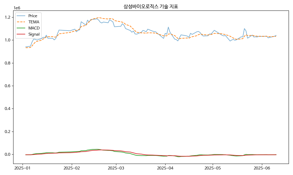 - TEMA: 현재가 1040000.00, TEMA 1032792.23 → 상승 흐름
