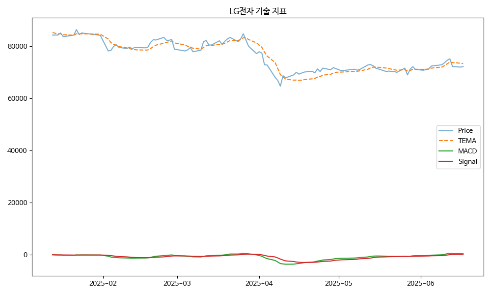 - TEMA: 현재가 72200.00, TEMA 73340.29 → 하락 흐름